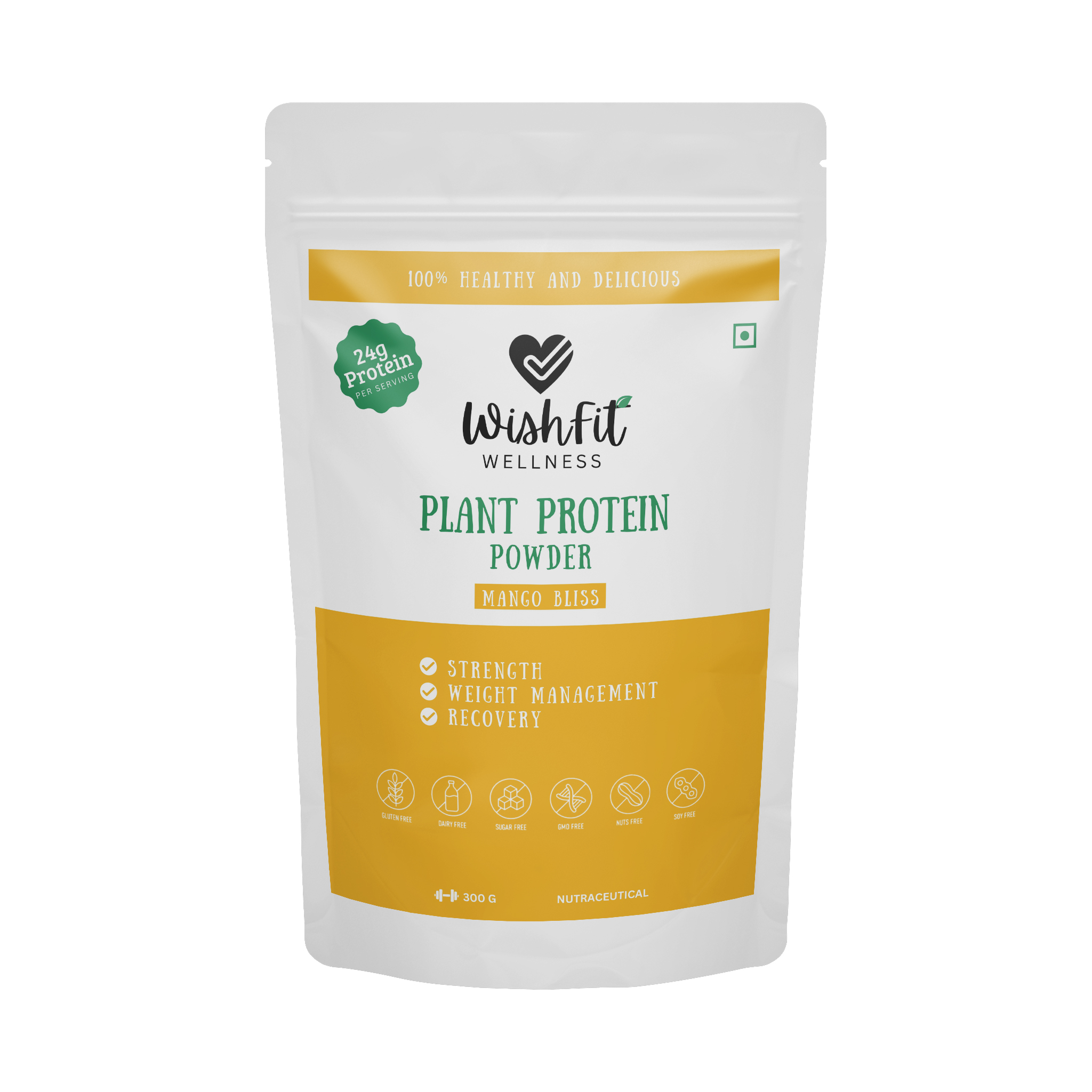 Introducing ‘Mango Bliss,’ the epitome of tropical delight in every scoop. Immerse yourself in the luscious fusion of ripe, sun-kissed mangoes, and the velvety richness of our WishFit Plant Protein. This irresistibly creamy blend not only tantalizes your taste buds but also nourishes your body with a burst of plant-powered goodness. Evolve your fitness/ wellness experience with Mango Bliss – where taste meets nutritious for a truly blissful treat! – it contains no preservatives and is sweetened only with Stevia (natural sweetener), ensuring a sugar-free, guilt-free indulgence.